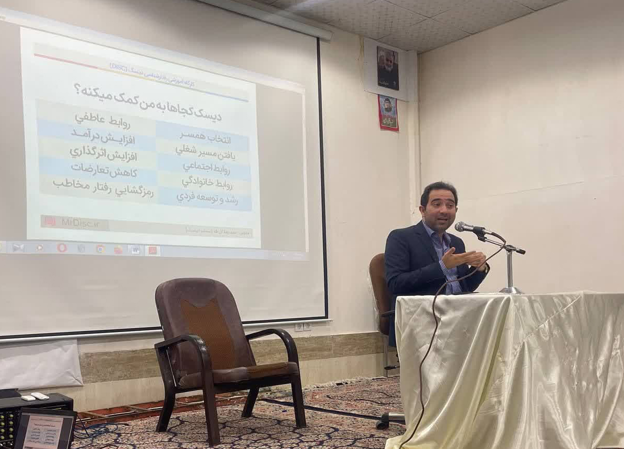به گزارش روابط عمومی موسسه ایده پردازان خلاق برگزاری دورههای رفتارشناسی بر اساس مدل بینالمللی دیسک توسط استاد سید رضا آل طاها درمدرسه شاهد برگزار گردید. در این جلسه که اولیای دانش آموزان مدرسه ابتدایی شاهد شهید رحیمی حضور داشتند به ویژگیهای افراد و دانش آموزان در قالب ۴ رنگ قرمز آبی سبز و زرد اشاره شد.